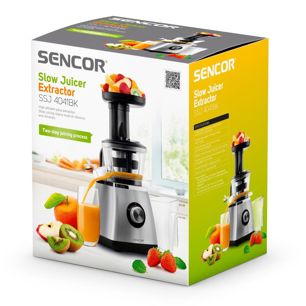 Αυτόματος διαχωρισμός πολτού Δοχείο πολτού χωρητικότητας 0,8 λίτρων Μικροφίλτρο φιλτραρίσματος από ανοξείδωτο χάλυβα Πολύ αποδοτικός κινητήρας 400 W Τριπλή προστασία Ο κινητήρας ξεκινά μόνο όταν η συσκευή έχει συναρμολογηθεί σωστά Αυτόματη απενεργοποίηση εάν αφαιρεθεί το καπάκι Αυτόματη απενεργοποίηση εάν ο κινητήρας υπερθερμανθεί Αντιολισθητικά πόδια με βεντούζες για χρήση χωρίς προβλήματα Στιβαρός κινητήρας κατασκευασμένος για συνεχείς περιόδους αποχύμωσης 15 λεπτών Ταχύτητα: 60 rpm Μήκος καλωδίου τροφοδοσίας: 110 cm Διαστάσεις: 230 x 210 x 445 mm Βάρος: 4,15 kg Επίπεδο θορύβου: <70 db (a) Τάση και συχνότητα: 220-240 v, 5060hz