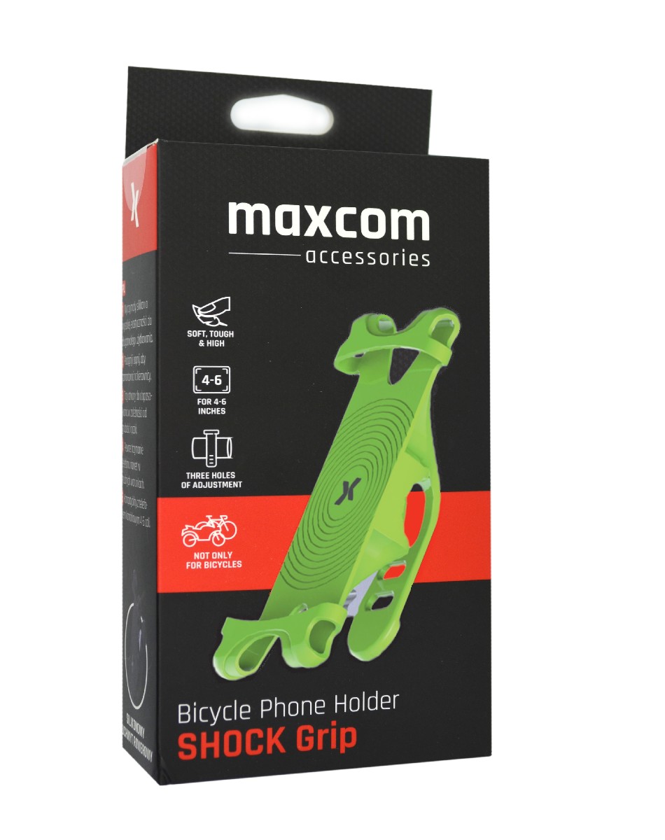 Βάση Στήριξης Ποδηλάτου Maxcom Shock Grip για Smartphone Πράσινη με εφαρμογή σε Μηχανές και Scooter. Η βάση είναι ιδανική για το κινητό αλλά και για συσκευές PowerBank ενώ η σιλικόνη στην λαβή επιτρέπει την ασφαλή τοποθέτηση χωρίς μετατοπίσεις απορροφώντας τους κραδασμούς. Συμβατό με συσκευές 4″-6″, διαθέτει τρία επίπεδα προσαρμογής θέσης, ενώ είναι κατασκευασμένο από ανθεκτικά και φιλικά προς την συσκευή σας, υλικά, ενώ μπορεί να κρατήσει με ασφάλεια την συσκευή.