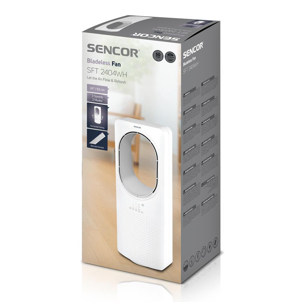 Ο ανεμιστήρας χωρίς πτερύγια μεγέθους 24″ (62 cm) συνδυάζει μοντέρνο σχεδιασμό με ασφάλεια και αποδοτικότητα, προσφέροντας τρεις ρυθμίσεις ταχύτητας για εξατομικευμένο έλεγχο της ροής αέρα. Διαθέτει οριζόντια ταλάντωση 50°, επιτρέποντας την αποτελεσματική κυκλοφορία του αέρα σε όλο τον χώρο. Χάρη στον καινοτόμο σχεδιασμό του, λειτουργεί αθόρυβα με μέγιστο επίπεδο θορύβου 55dB(A), εξασφαλίζοντας άνεση και ηρεμία. Ο ανεμιστήρας προσφέρει μέγιστη ροή αέρα 1 m³/min και μέγιστη ταχύτητα αέρα 4,3 m/s, καλύπτοντας τις ανάγκες δροσιάς κάθε περιβάλλοντος. Διαθέτει επιπλέον έλεγχο αφής με ενδείξεις LED, χρονοδιακόπτη 15 ωρών, τηλεχειριστήριο και καλώδιο μήκους 1,5 μέτρων, λειτουργώντας με ισχύ 50W για μέγιστη απόδοση.