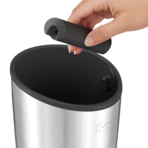 Το knocker της Sage είναι ο τέλειος φίλος για την παρασκευή καφέ. Έχει χωρητικότητα εως και 20 αδειάσματα κλείστρου και ανθεκτική ράβδο κρούσης η οποία είναι αφαιρούμενη για εύκολο καθάρισμα του εσωτερικού δοχείου. Επίσης η βάση διαθέτει αντιολισθητική επιφάνεια από καουτσούκ για απόλυτη σταθερότητα στον πάγκο.