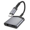 Αντάπτορας Hoco LS40 USB-C με Διπλή Εξοδο σε 2xUSB-C για Τροφοδοσία και Ηχο Γκρί