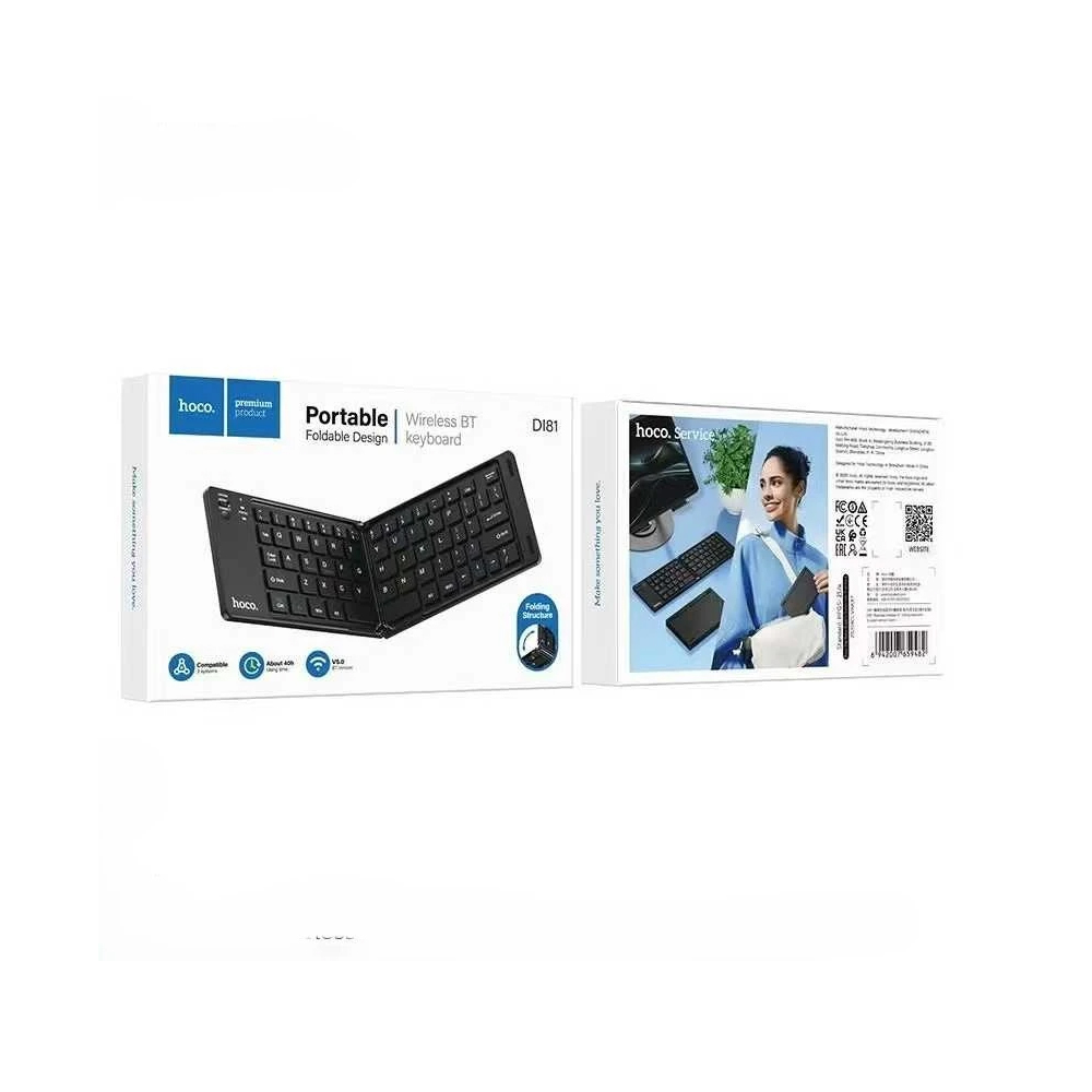 Ασύρματο Mini Πληκτρολόγιο Hoco DI81 Αναδιπλούμενο 67 Πλήκτρων Bluetooth v5.0 150mAh 40 Ώρες Χρήσης Μαύρο. Το πληκτρολόγιο διαθέτει πλήκτρα με αγγλικούς χαρακτήρες.
