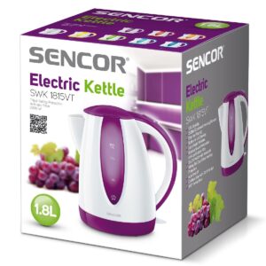 Χωρητικότητα 1,8 l Ένδειξη νερού διπλής όψης Αφαιρούμενο και πλενόμενο φίλτρο ακαθαρσιών και αλάτων Αποθήκευση καλωδίου ρεύματος στη βάση Βάση θέρμανσης από ανοξείδωτο χάλυβα με καλυμμένο σπιράλ θέρμανσης Προστασία από υπερθέρμανση όταν ενεργοποιείται χωρίς νερό Αυτόματη απενεργοποίηση όταν αφαιρείται από τη βάση Αυτόματη σβήσιμο όταν επιτευχθεί το σημείο βρασμού Κεντρική υποδοχή 360° Κουμπί λειτουργίας με οπίσθιο φωτισμό Ονομαστική ισχύς 2000 W Βάρος χωρίς βάση: 650 g Τάση και συχνότητα: 220-240 V, 50 Hz