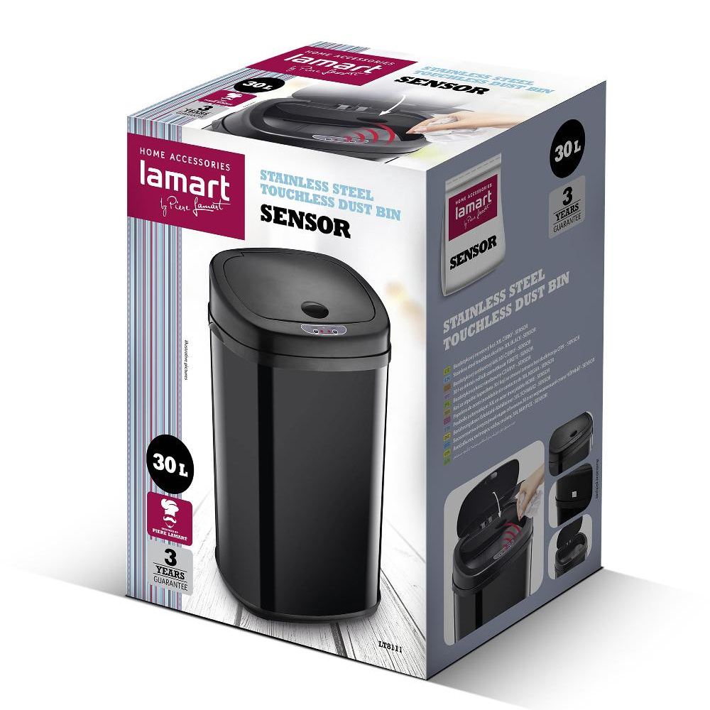 Κάδος απο ανοξείδωτο ατσάλι 30 λίτρων. Το καπάκι ενεργοποιείται με αισθητήρα κίνησης, χωρίς να χρειάζεται επαφή, το οποίο αποτρέπει την εξάπλωση μικροβίων. έχει κομψό σχεδιασμό για να ταιριάζει σε κάθε χώρο. Διαστάσεις: 25 x 34 x 54 cm.