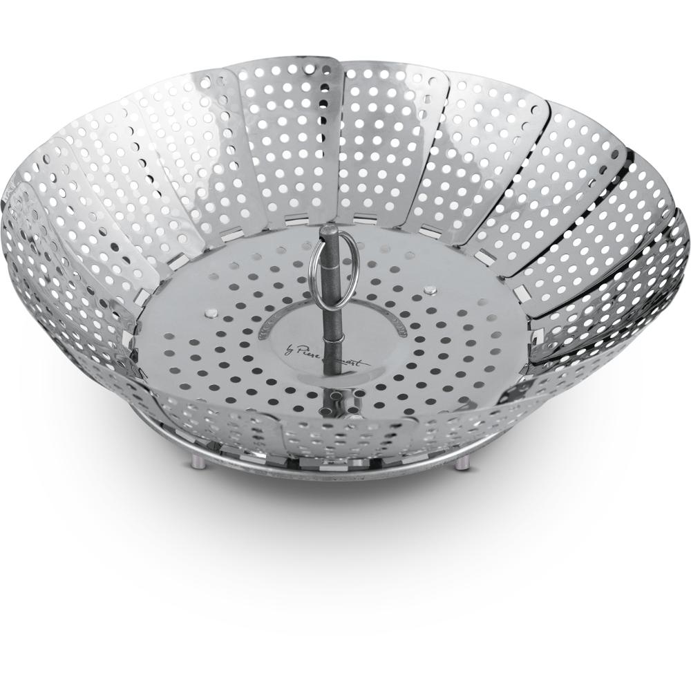 Αναδιπλούμενο καλάθι για μαγείρεμα στον ατμό, από ανοξείδωτο ατσάλι. Είναι κατάλληλο για μαγείρεμα ζυμαρικών στον ατμό, το μαγείρεμα λαχανικών και άλλων πιάτων στον ατμό, διατηρώντας τα μέταλλα και τις βιταμίνες. Μπορεί να χρησιμοποιηθεί σε κατσαρόλες διαφόρων διαμέτρων. Όταν τελειώσει το μαγείρεμα ή αν χρειάζεται να συμπληρώστε νερό, αφαιρείται εύκολα χάρη στο δακτυλίδι στο κέντρο του. Πρίν από την πρώτη αλλα και μετά από κάθε χρήση, ξεπλύνετε καλά με σαπούνι και ζεστό νερό. Κρατήστε το προϊόν μακρία απο μικρά παιδιά. Διαστάσεις από 14 έως 23 cm.