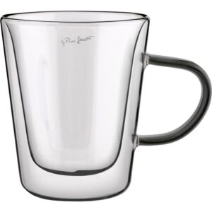 Σετ 2 γυάλινων ποτηριών τσαγιού VASO Lamart LT9121, ιδανικά για ζεστά και κρύα ροφήματα. Διαθέτουν διπλό τοίχωμα για βέλτιστη διατήρηση της θερμοκρασίας και μοντέρνο μαύρο χρώμα. Ανθεκτικά στη θερμότητα και κατάλληλα για χρήση σε φούρνο μικροκυμάτων και πλυντήριο πιάτων.