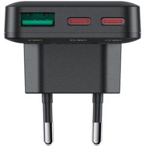 Φορτιστής Ταξιδίου Acefast A100 Fast Charging Ultra Thin Γωνιακός με 2xUSB-C 1xUSB-A PD65W QC3.0 GaN Μαύρος