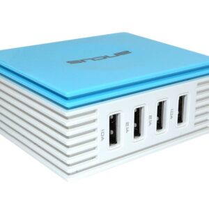 Φορτιστής Ταξιδίου Ancus Multi Charger 4 Usb 4.2A Λευκό – Μπλέ. Συμβατός με κάθε τύπο κινητού τηλεφώνου. (Input: AC100-240V 50/60Hz 0.65A // Output: DC5.0V=4.2A)