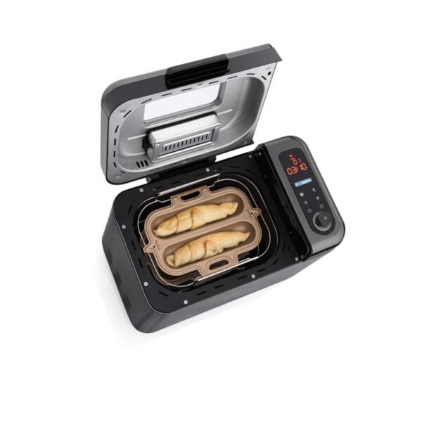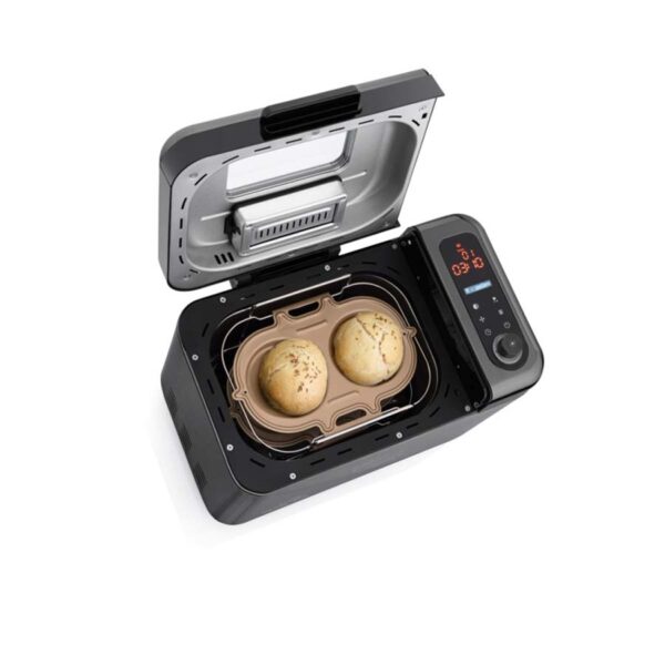 Μια πρακτική λειτουργία είναι επίσης η καθυστέρηση έναρξης έως και 15 ωρών, η οποία σας επιτρέπει να έχετε τέλειο συγχρονισμό – φρέσκο και τραγανό ψωμί μπορεί να σας περιμένει όταν επιστρέφετε από τη δουλειά ή να κάνει πιο ευχάριστα τα πρωινά του Σαββατοκύριακου. Μετά το ψήσιμο, θα παραμείνει ζεστό για έως και 60 λεπτά, χάρη στη λειτουργία αυτόματης διατήρησης θερμοκρασίας.