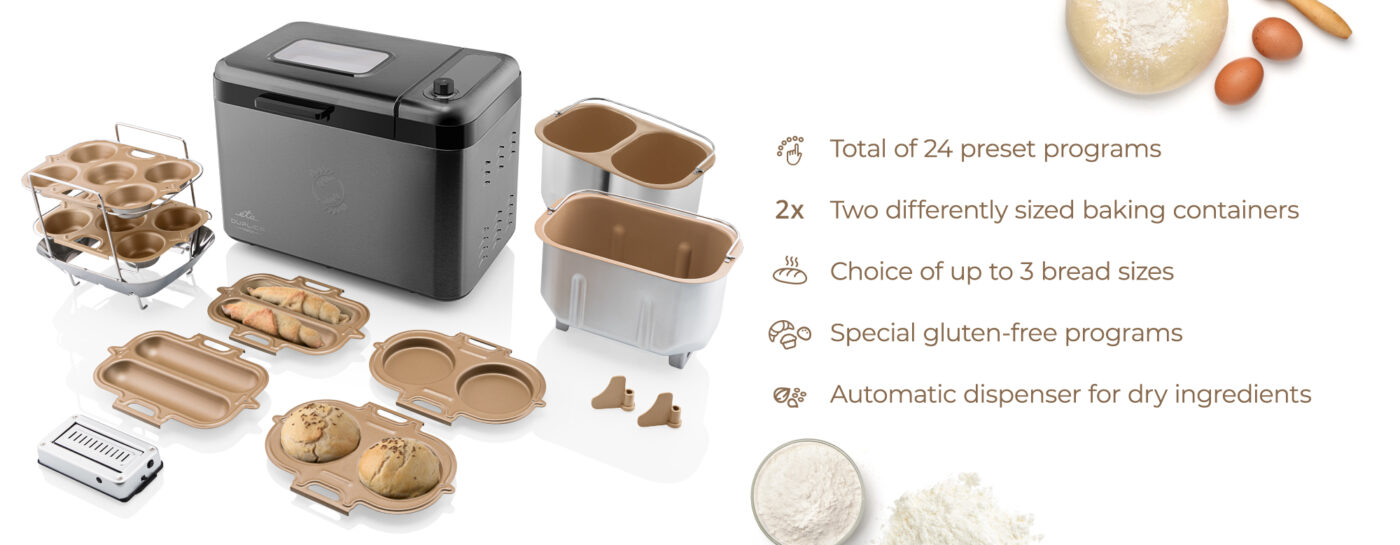 Δεν χρειάζεται πλέον να πάτε στο αρτοποιείο για τη μυρωδιά του φρεσκοψημένου ψωμιού. Ο οικιακός αρτοπαρασκευαστής ETA Duplica II MAX είναι πρωταθλητής όχι μόνο στο ψήσιμο του κλασικού ψωμιού, αλλά μπορεί εύκολα να χειριστεί και ψωμιά χωρίς γλουτένη, ολικής αλέσεως, αλμυρά και γλυκά. Ξέρει ακριβώς τι χρειάζεται για να γίνει τέλειο και μπορεί εύκολα να χειριστεί τη δημοφιλή γαλλική ζύμη με τραγανή κρούστα και ελαφριά ψίχα.