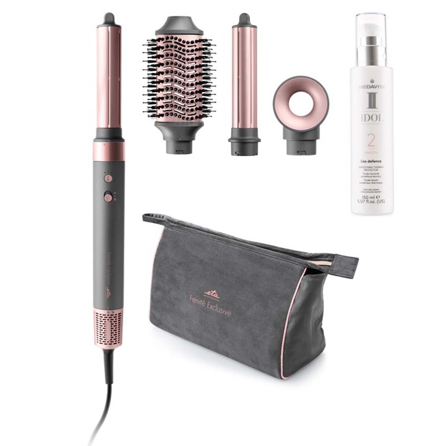 Μπείτε σε έναν κόσμο ασυμβίβαστης ομορφιάς και τεχνολογίας αιχμής με το πολυλειτουργικό styling ETA Fenité Exclusive . Αυτή η τεχνολογική καινοτομία έχει σχεδιαστεί για γυναίκες που ξέρουν τι θέλουν – τέλεια εμφάνιση, υγιή μαλλιά και αβίαστο styling. Είναι κάτι περισσότερο από ένα απλό σίδερο για μπούκλες, είναι η καθημερινή σας πολυτελής ιεροτελεστία.