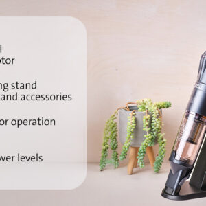 - Ισχυρός ψηφιακός κινητήρας BLDC νέας γενιάς 120W με μεγάλη διάρκεια ζωής, η υψηλότερη ισχύς αναρρόφησης της ηλεκτρικής σκούπας στη σειρά HANDY