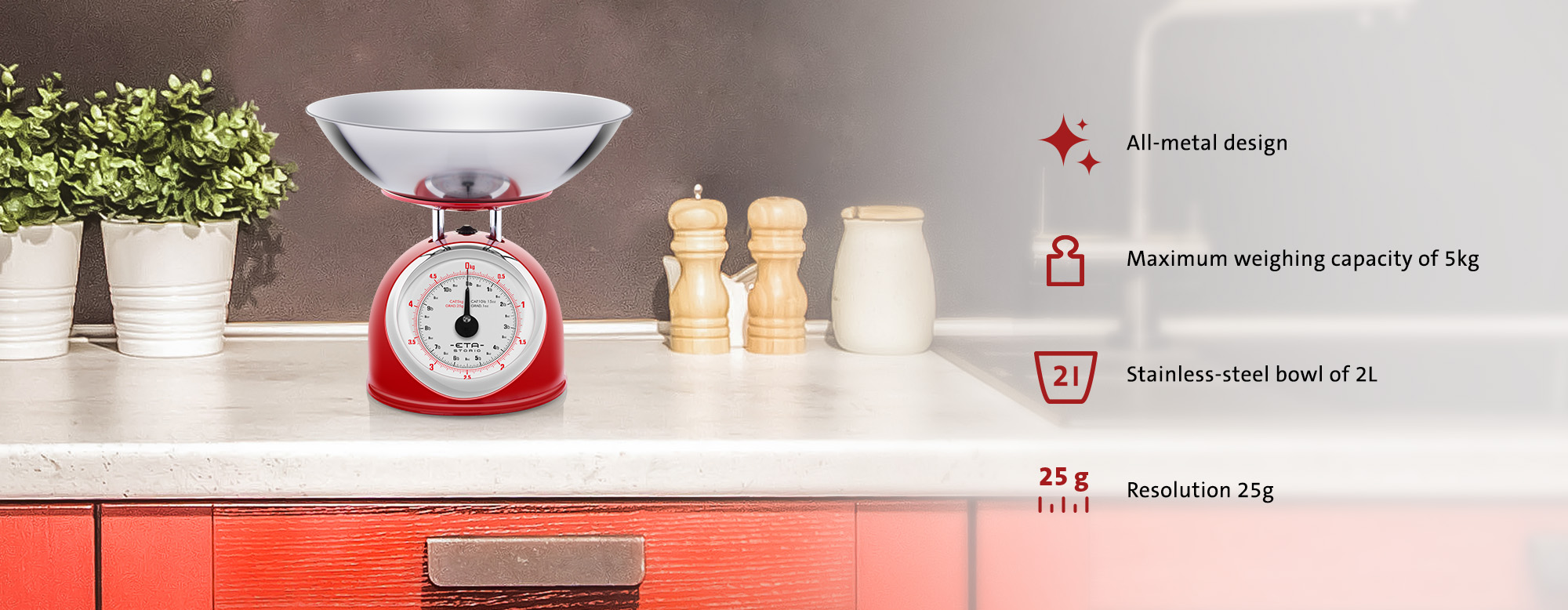 Αν και πολλές γιαγιάδες είναι εξπέρ στο μαγείρεμα με το μάτι, οι ζυγαριές κουζίνας αποτελούν εδώ και καιρό αναπόσπαστο κομμάτι κάθε καλά εξοπλισμένης κουζίνας. Η μεταλλική ζυγαριά κουζίνας σε ρετρό σχεδιασμό από τη συλλογή ETA STORIO μοιάζει πολύ με αυτή της γιαγιάς, αλλά γρήγορα θα γίνει η αγαπημένη των σύγχρονων σεφ και μαγείρων.