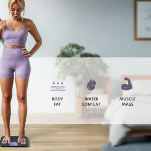 Η ζυγαριά χρησιμοποιεί ανάλυση βιοηλεκτρικής σύνθετης αντίστασης (BIA) – μια μη επεμβατική και ασφαλή μέθοδο που μετρά τη βιολογική αντίσταση του σώματος χρησιμοποιώντας ένα ασθενές ηλεκτρικό ρεύμα. Με βάση δεδομένα όπως ύψος, ηλικία, φύλο, βάρος και αντίσταση σώματος, υπολογίζει τη σύνθεση του σώματος – σωματικό λίπος, περιεκτικότητα σε νερό, μυϊκή μάζα, οστική μάζα, κατανάλωση θερμίδων (KCAL) και BMI . Λόγω του κομψού σχεδιασμού της με γυάλινη πλατφόρμα ζύγισης, μεγάλη οθόνη με οπίσθιο φωτισμό και εύχρηστα χειριστήρια αφής, αποτελεί ιδανική επιλογή για κάθε νοικοκυριό.