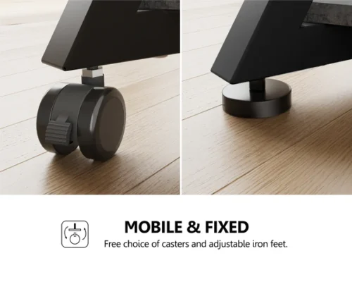 Εξοπλισμένο με εύκαμπτους τροχούς γενικής χρήσης , αυτή η βάση τηλεόρασης μπορεί να μετακινηθεί εύκολα από το ένα μέρος στο άλλο. Για πρόσθετη σταθερότητα, οι τροχοί μπορούν να αντικατασταθούν με ρυθμιζόμενα πόδια. Κατάλληλη για χρήση σε υπνοδωμάτια, γραφεία και άλλα.