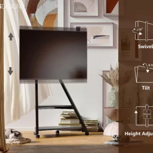 Αυτή η βάση τηλεόρασης διαθέτει ροδάκια γενικής χρήσης με ομαλή κύλιση, διευκολύνοντας τη μετακίνησή της μεταξύ δωματίων. Για πρόσθετη σταθερότητα, οι ρόδες μπορούν να αντικατασταθούν με ρυθμιζόμενα πόδια. Ιδανική για χρήση σε υπνοδωμάτια, γραφεία και άλλους χώρους διαβίωσης.