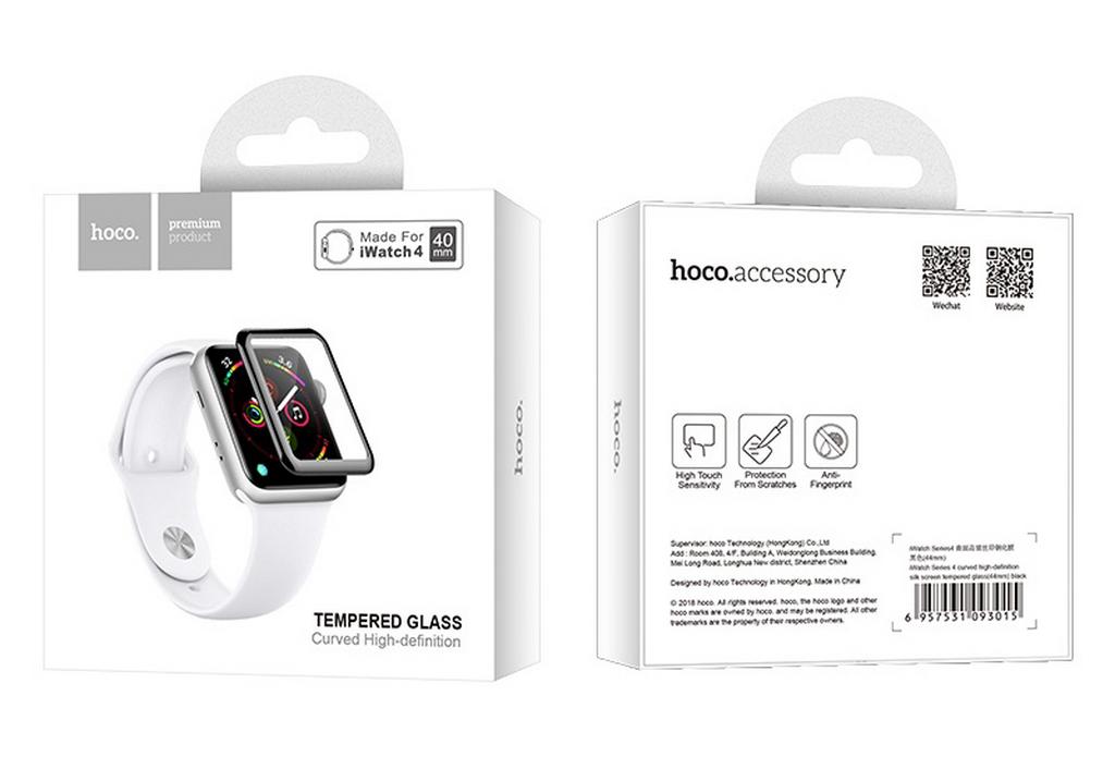 Tempered Glass Hoco 0.15mm Curved Silk Screen 40mm Μαύρο για Apple Watch Series 4. Υψηλής ποιότητας γυαλί 40mm, ενάντια στα δακτυλικά αποτυπώματα, δεν προσκολλούνται φυσαλίδες, πάχους 0.15mm. Τρισδιάστατη καμπύλη θερμής κάμψης και άκρα εφαρμόζουν που στενά.