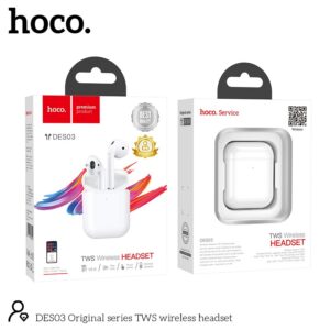 Wireless Hands Free Hoco DES03 Plus TWS V5.0 350mAh και 3h Ώρες Λειτουργίας Λευκά με Μαύρο Silicon Sleeve