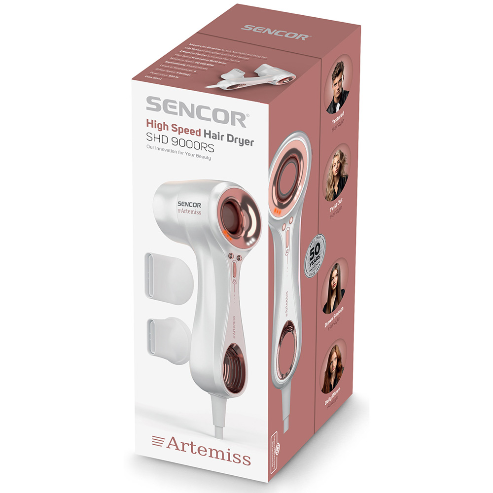 Το Sencor SHD 9000RS High-speed σεσουάρ μαλλιών προσφέρει εξαιρετική απόδοση με ροή αέρα έως 75 km/h, καθιστώντας το ιδανικό για γρήγορο στέγνωμα. Διαθέτει 3 επίπεδα ταχύτητας και 4 ρυθμίσεις θερμοκρασίας, επιτρέποντάς σας να προσαρμόσετε τη χρήση ανάλογα με τις ανάγκες σας. Η ισχυρή ιοντοποίηση διασφαλίζει μαλλιά απαλά, λαμπερά και υγιή. Περιλαμβάνει δύο μαγνητικά εξαρτήματα για εύκολο styling, ενώ το αποσπώμενο φίλτρο επιτρέπει εύκολη συντήρηση.