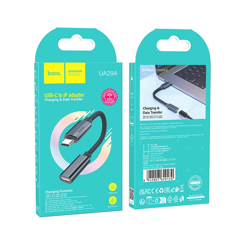 Αντάπτορας Hoco UA29A USB-C σε Lightning 3.0A 15cm Braided