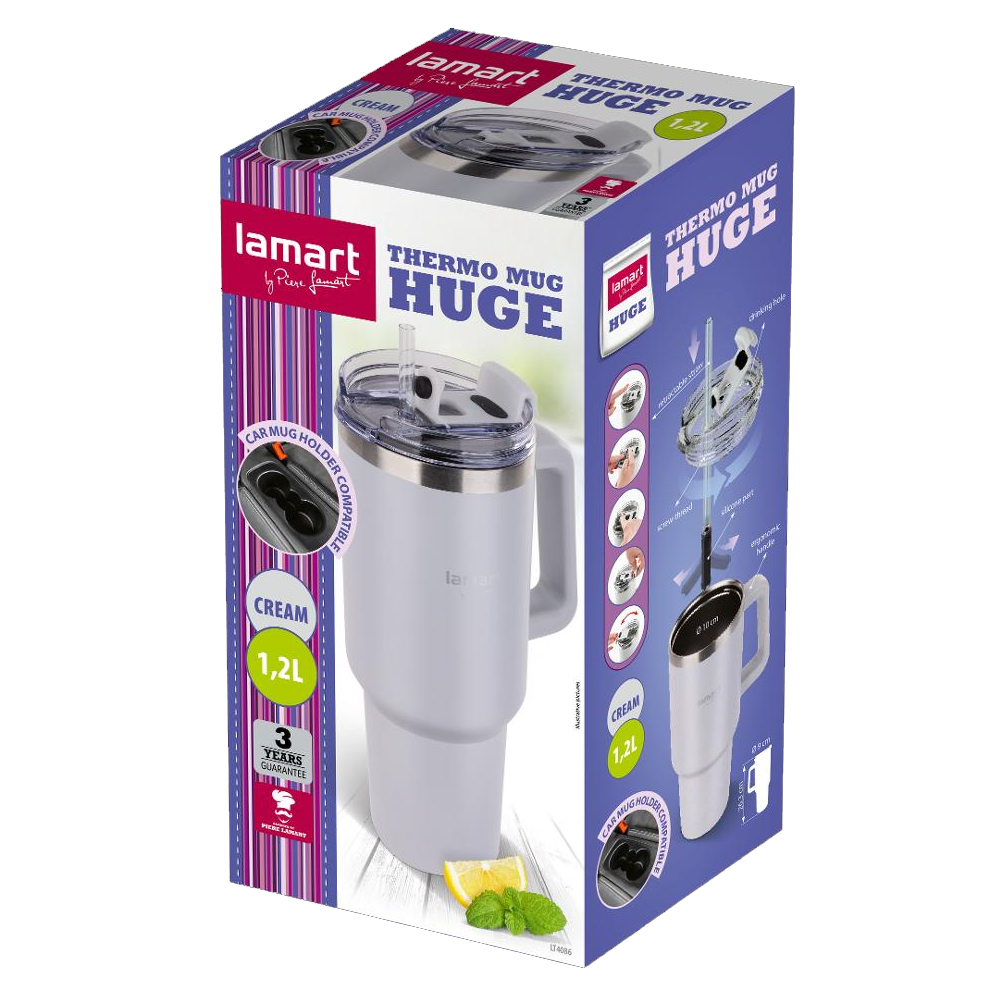 Ποτήρι Θερμός από Ανοξείδωτο & Πλαστικό 1.2L HUGE Lamart LT4086 Λευκό