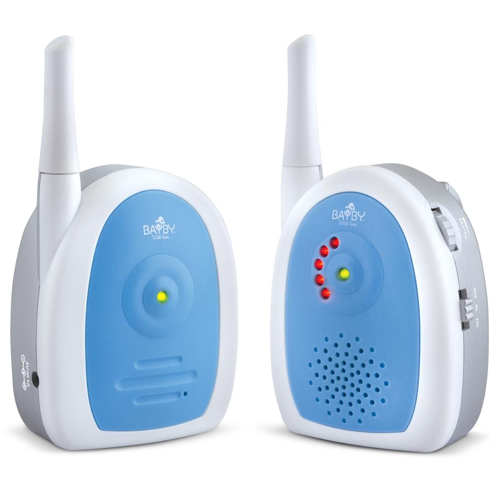 Ψηφιακή συσκευή παρακολούθησης μωρού με ήχο απο τη Bayby. Επιτρέπει την ακρόαση απο τη μονάδα του παιδιού χωρίς παρεμβολές χάρη στη ψηφιακή τεχνολογία 2.4 GHz. Παρέχει εμβέλεια 300m.