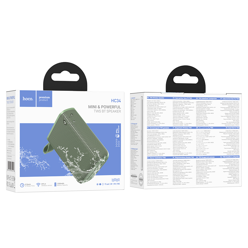 Το Hoco HC34 Star είναι ένα φορητό Bluetooth ηχείο με μοντέρνο σχεδιασμό και ισχυρή απόδοση, εξοπλισμένο με Bluetooth 5.4 και chip Blue trum AB5368E για σταθερή σύνδεση και καθαρό ήχο. Διαθέτει ηχείο διαμέτρου 52mm με ισχύ 5W, προσφέροντας ποιοτικό ήχο σε μικρό μέγεθος. Η μπαταρία 1200mAh φορτίζει σε 2 ώρες και παρέχει έως 4 ώρες συνεχούς χρήσης. Υποστηρίζει λειτουργίες Bluetooth, FM ραδιόφωνο, κάρτα TF και TWS για ασύρματη σύνδεση με δεύτερο ηχείο. Με διαστάσεις 111x84x40mm και βάρος 258g, είναι ιδανικό για καθημερινή χρήση και εύκολη μεταφορά.