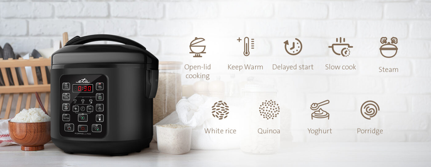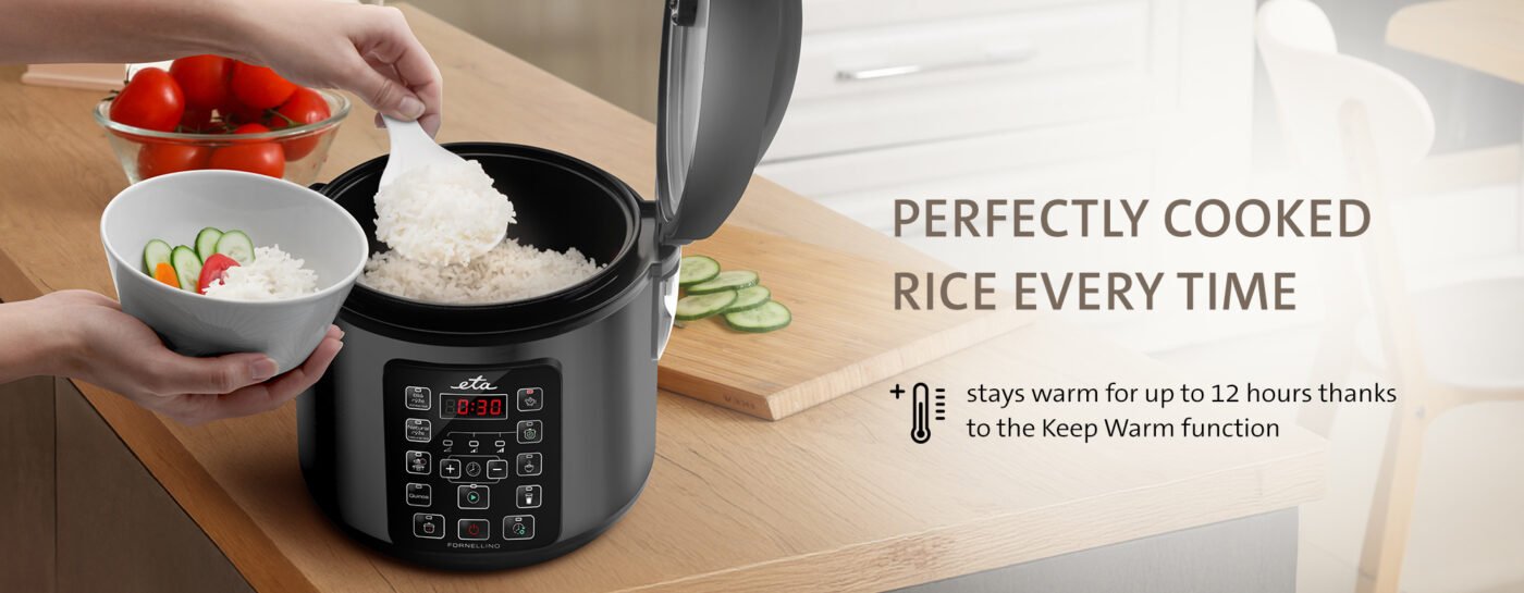 Το μαγείρεμα ρυζιού δεν ήταν ποτέ τόσο εύκολο. Με την πολυλειτουργική συσκευή ρυζιού ETA Granellino, θα έχετε τέλεια μαγειρεμένο ρύζι κάθε φορά, επιπλέον, σχεδόν χωρίς την βοήθειά σας. Το ETA Granellino φροντίζει τα πάντα μόνη του, χάρη στην πλήρως αυτόματη λειτουργία. Μετά το μαγείρεμα, διατηρεί επίσης τη θερμοκρασία έως και 12 ώρες .