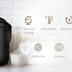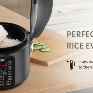 - Διατήρηση θερμοκρασίας – μετά την πάροδο του χρόνου μαγειρέματος, θα ακουστεί ένα ηχητικό σήμα και η συσκευή ρυζιού θα μεταβεί αυτόματα στη λειτουργία “Διατήρηση θερμοκρασίας”
