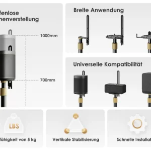 Μεταμορφώστε την ηχητική σας εμπειρία με μια βάση που ρυθμίζεται από 700 έως 1000 mm για να φέρει τα ηχεία σας στο ιδανικό ύψος για τέλειο ήχο. Σχεδιασμένη για ακριβή έλεγχο, προσφέρει ισορροπημένο και εντυπωσιακό ήχο που βελτιώνει κάθε στιγμή ακρόασης.