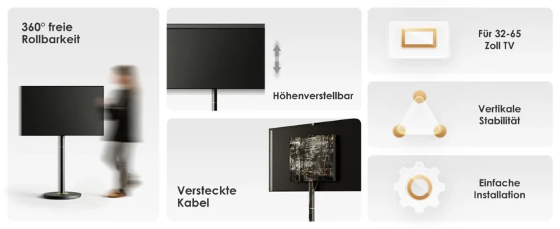 Με ρυθμιζόμενο εύρος ύψους έως 200 mm, μπορείτε εύκολα να ρυθμίσετε την τηλεόρασή σας στο βέλτιστο ύψος θέασης, με κεντρικά ύψη VESA μεταξύ 1000 και 1200 mm. Είτε κάθεστε στον καναπέ είτε στο γραφείο, έχετε πάντα μια άνετη γωνία θέασης.
