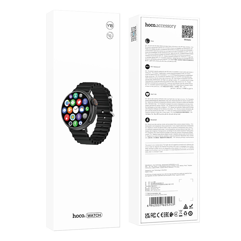 Smartwatch Hoco Y18 IP67 IPS Οθόνη 1.52″ 300mAh V5.1 με Δυνατότητα Κλήσεων Μαύρο