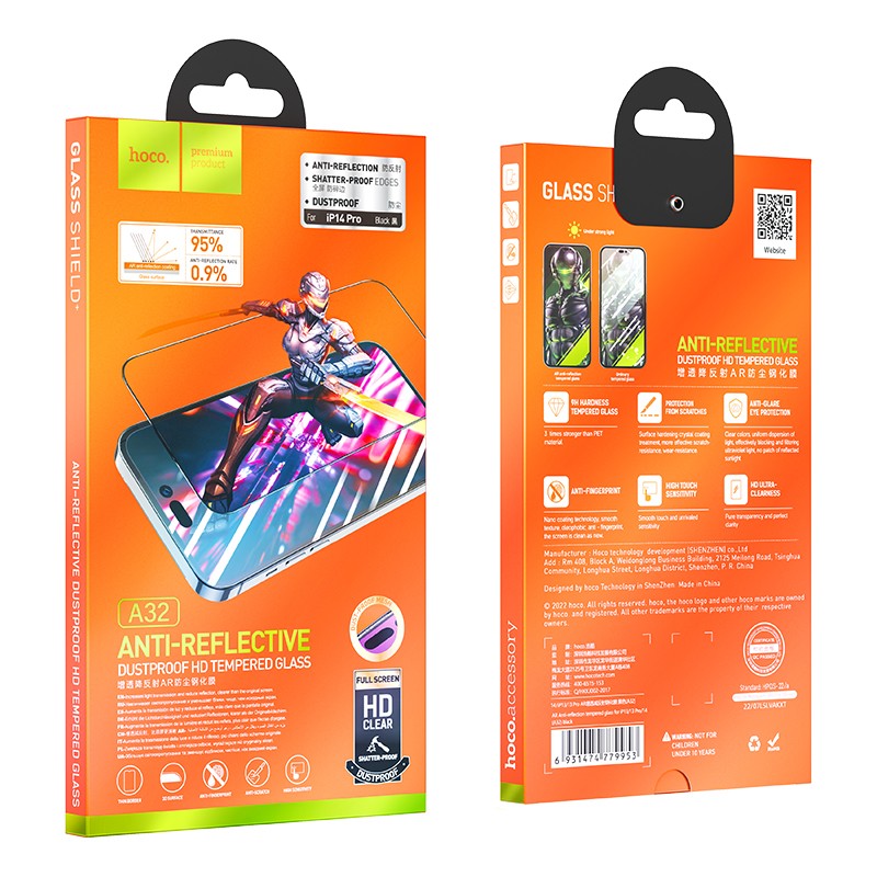 Tempered Glass Hoco A32 Anti Reflective Dustproof 0.33mm για Apple iPhone 14 Pro Μαύρο