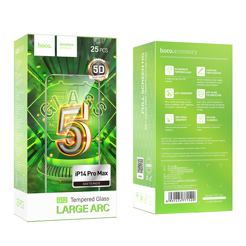 Tempered Glass Hoco G12 5D Full Screen Large Arc Edges Protection . Με ανθεκτικότητα 9Η και ειδική προστασία από γρατζουνιές, αλλά και προστασία του ματιού με φιλτράρισμα της οθόνης. Σκληρή επιφάνεια 0.4mm για πιο αποτελεσματική αντοχή στη διάβρωση και τη φθορά. Καθαρά χρώματα, ομοιόμορφη διασπορά φωτός, αποτελεσματική δέσμευση και φιλτράρισμα υπεριώδους φωτός. Με ενισχυμένο και στρογγυλεμένο περίβλημα στις άκρες για extra προστασία.