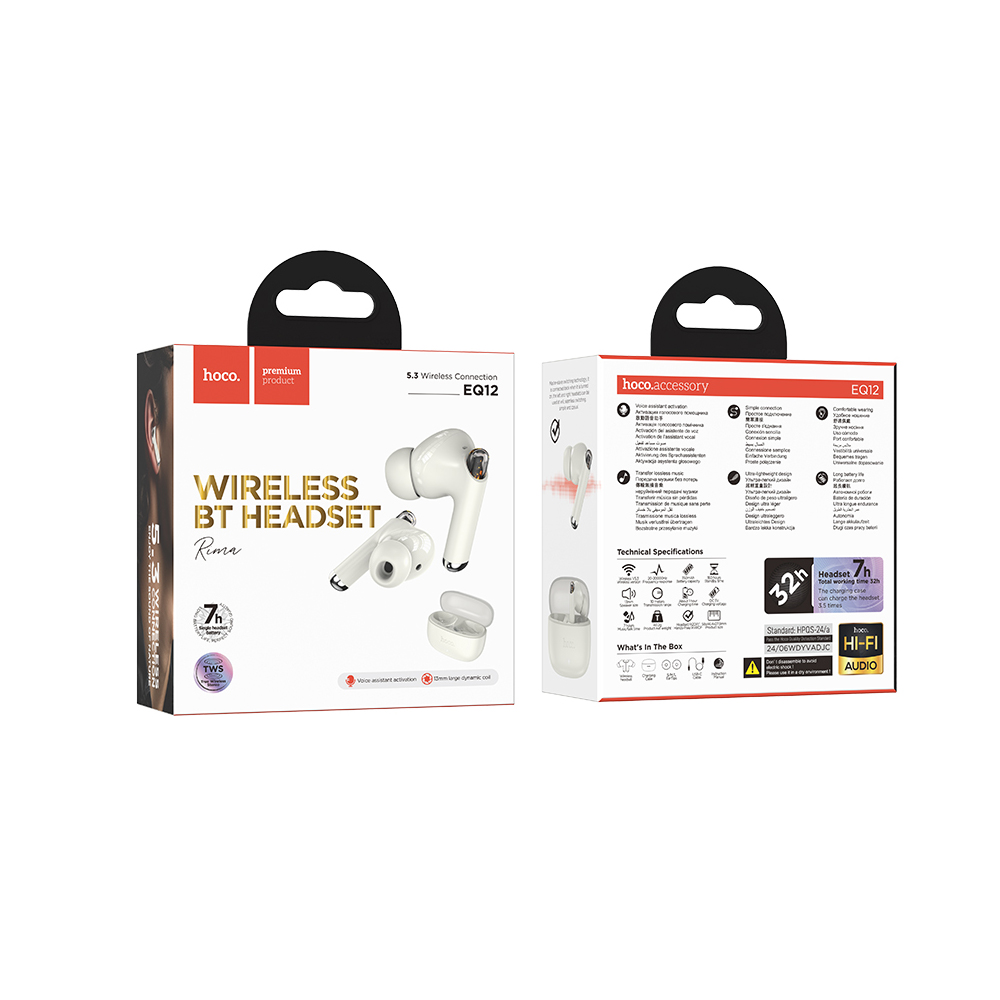 Wireless Hands Free Hoco EQ12 Rima TWS V5.3 350mAh 7 Ώρες Λειτουργίας με Πλήκτρο Ελέγχου και Συμβατό με Siri Λευκό