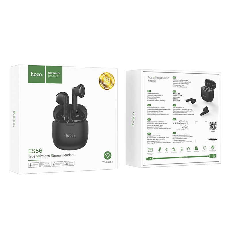 Wireless Hands Free Hoco ES56 Scout TWS V5.1 Εναλλαγή Master/Slave και Συμβατότητα με Siri / Google Assistant Μαύρο. Ποτέ ξανά ο ήχος δεν έδειχνε τόσο αισθητικά ποιοτικός! Τα ακουστικά που φτιάχτηκαν για να δείχνουν τόσο επαγγελματικά όσο και εύχρηστα έρχονται με μπαταρία 320mAh στην βάση τους και 30mAh στο κάθε ακουστικό για να δίνουν με 1,5 ώρα φόρτισης έως και 4 ώρες ομιλίας και αναπαραγωγής ή 120 ώρες σε κατάσταση αναμονής. Διαθέτουν λειτουργία εναλλαγής του κύριου/δευτερεύοντος ακουστικού ενώ είναι συμβατά με εντολές Siri για τις συσκευές Apple. Πέρα από την εργoνομική τους σχεδίαση, προσφέρουν καθαρό ήχο και το χαμηλό βάρος τους δεν επιβαρύνει τον χρήστη. Διαστάσεις 49x47x25mm, Βάρος 43g